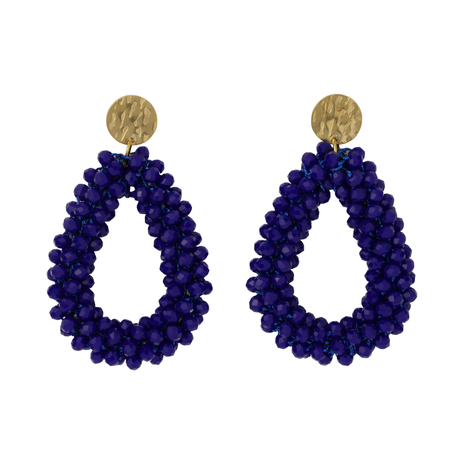 Das strukturierte, goldfarbene Steckelement setzt einen warmen Kontrast zum kraftvollen Blau und unterstreicht die luxuriöse Wirkung dieser Ohrringe.