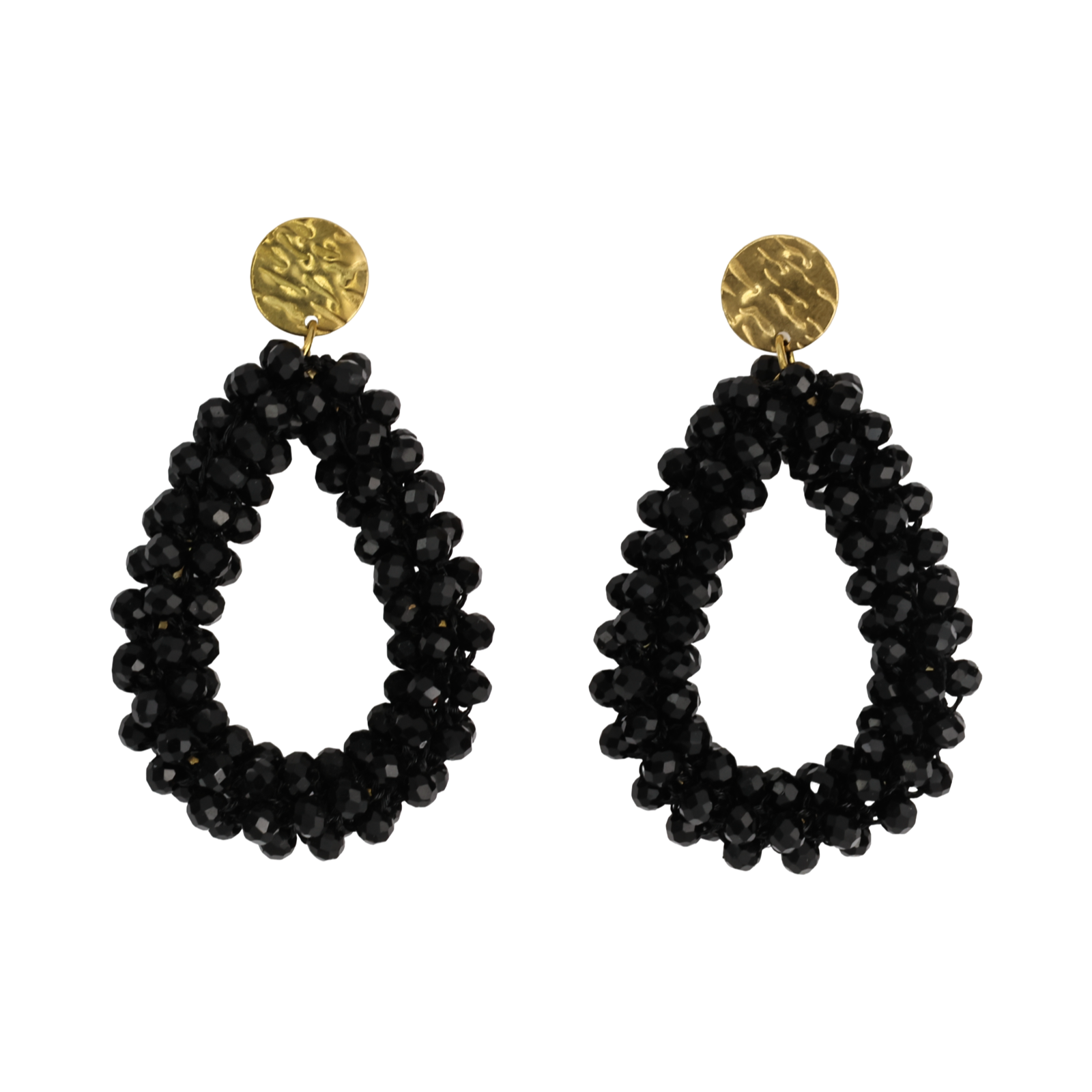 Die Ohrringe „Lilly“ vereinen markante Eleganz mit femininer Form. Facettierte schwarze Perlen formen eine ausdrucksstarke, ovale Silhouette und reflektieren das Licht dezent und edel. Das strukturierte, goldfarbene Steckelement setzt einen warmen Kontrast zum intensiven Schwarz und verleiht dem Design eine luxuriöse Note.